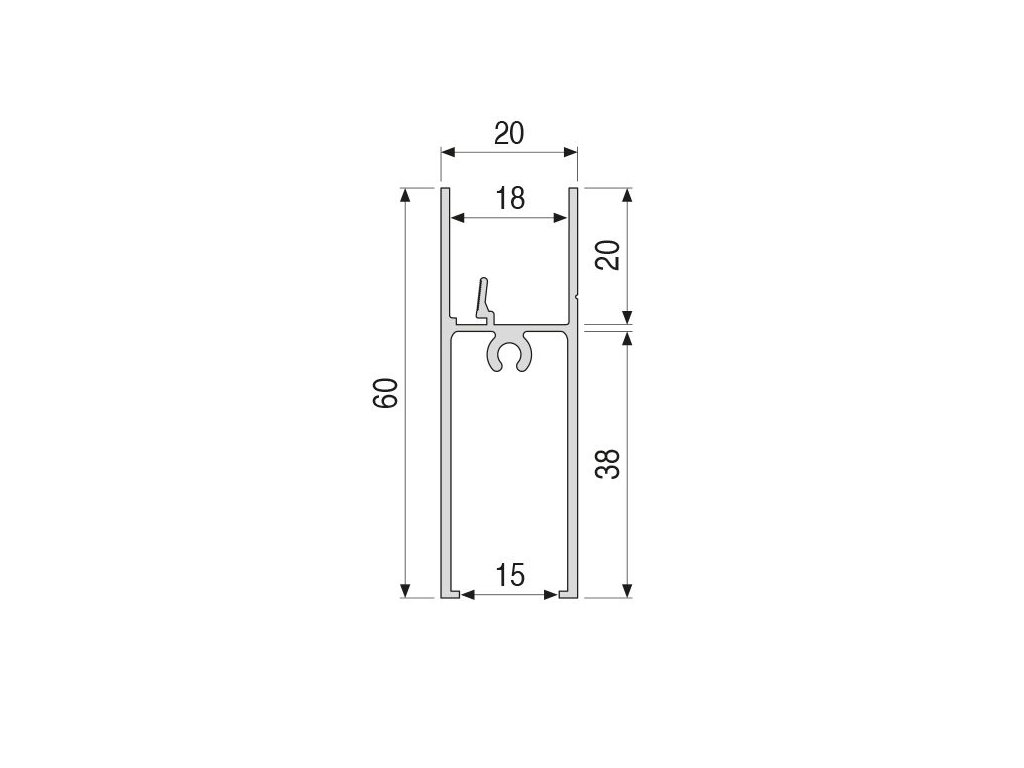 Spdoní profil Inova pro montáž rámové konstrukce z 18mm DTD nebo skla.