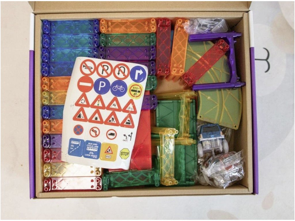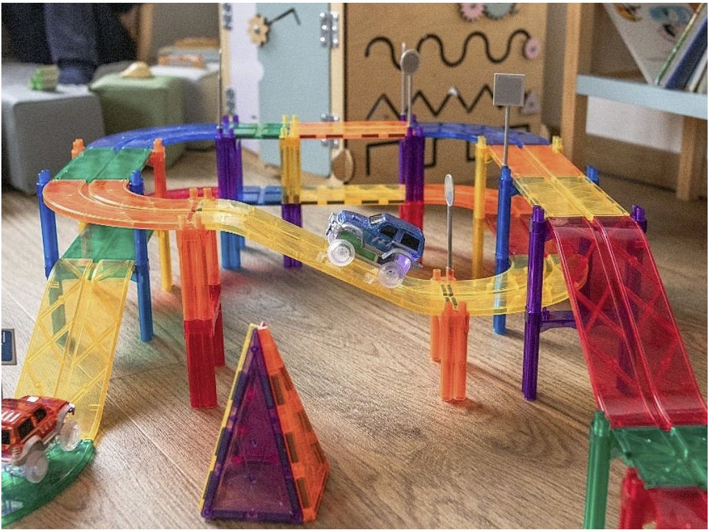 Magnetická stavebnice Elifix pro stavbu cest, silnic a mostů obsahuje obrovské množství barevných dílů, díky kterým děti vytvoří úžasný svět pro dvě autíčka, která se v něm budou vesele pohybovat. Kromě dílků ve tvaru trojúhelníků, čtverců, obdélníků, silnic a podpěr pro mosty nechybí ani dopravní značky, které celou stavbu, klidně i vícepatrovou, dotáhnou k dokonalosti.