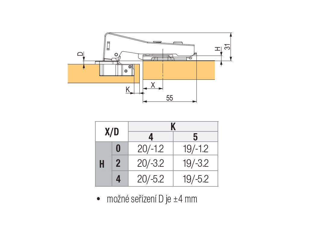 Závěs příložný klip bez tlumením a s excentremStrong Plus- vysoká kvalita a dlouhá životnost