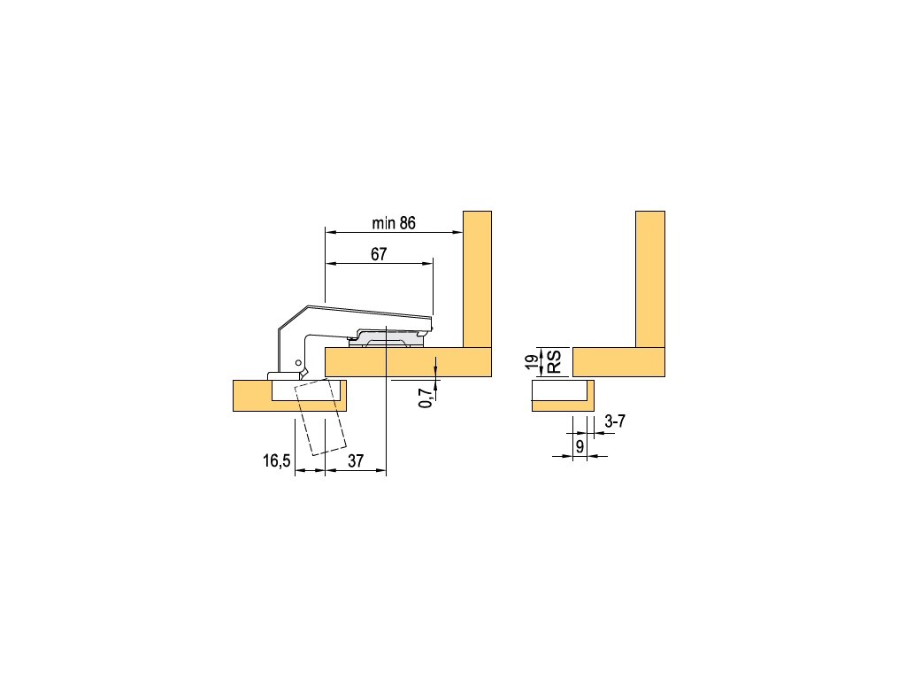 Závěs naložený pro slepý úhel s tlumením Blumotion (lze deaktivovat)- označení u výrobce Blum 79B9950