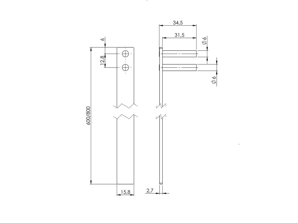 Zámková tyč pro centrální nábytkový zámekDélka 600 nebo 800mm