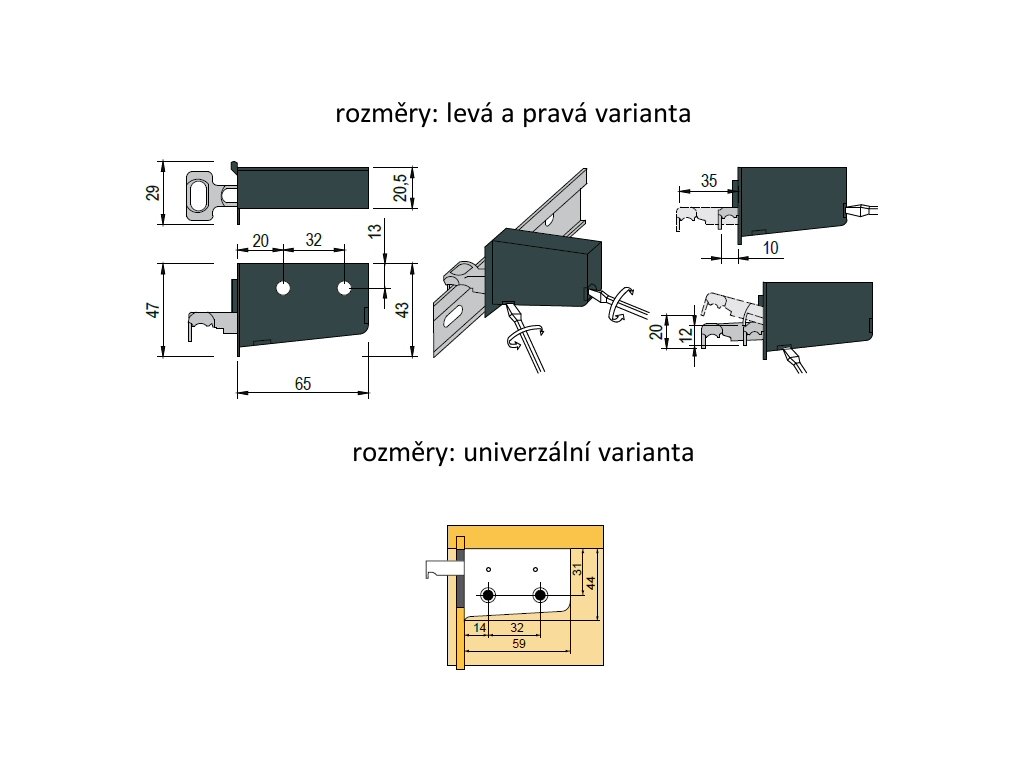 - rektifikační kování pro zavěšení skříněk- upevnění na vrut