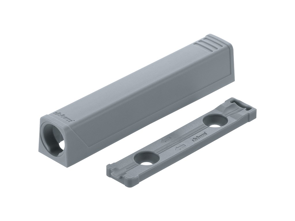 Světle šedý. Montáž s pomocí vrutu do dřevotřísky pr. 3.5 mm a/nebo pr. 4 mm nebo s pomocí eurošroubu . Materiál plast . TIP-ON musíte objednat navíc zvlášt