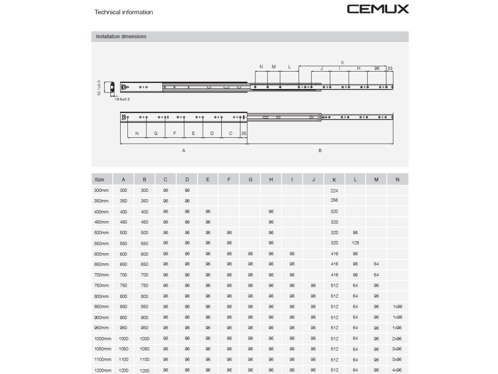výsuv kuličkový vysoce zátěžový 100 kg bez dotlumení 700 mm