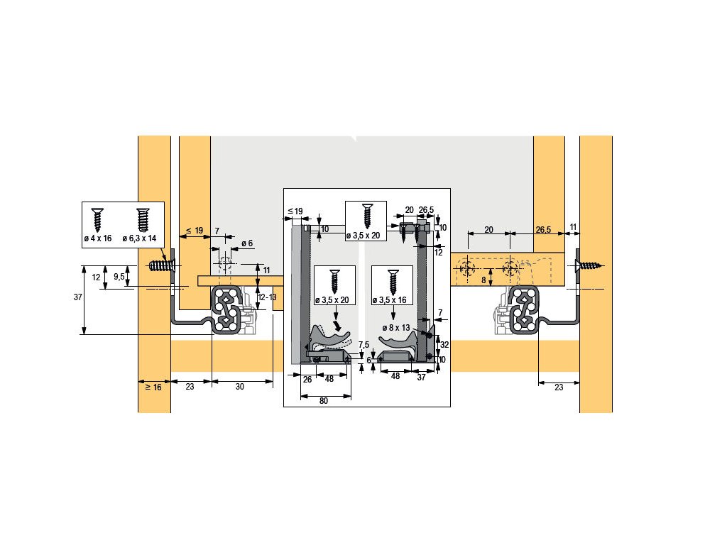 Celovýsuv Quadro V6 EB23 s tlumením Silent SystemŠpička ve své třídě. Výsuvy Quadro pro zásuvky garantují vysoký komfort. S atraktivním designem díky zcela skryté montáži. S dlouhou životností trvalým špičkovým výkonem. Odolné valivé dráhy optimálně vedou ocelové kuličky - pro vysokou vertikální a horizontální stabilitu. Široký sortiment s četnými komfortními funkcemi nabízí solidní a hospodárné řešení pro nábytek v různých segmentech.