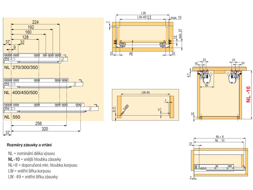 - skrytý celovýsuv s dotlumením při zavírání a synchronizací- nosnost 40kg